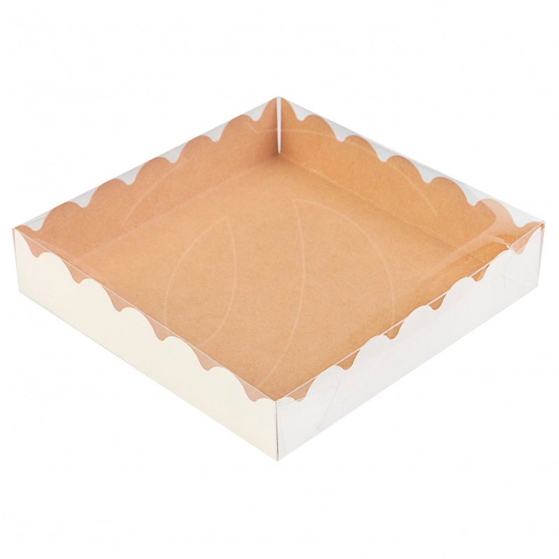 Доставка Коробка для сладостей с прозрачной крышкой крафт 15х15х3 см из магазина в вашем городе: