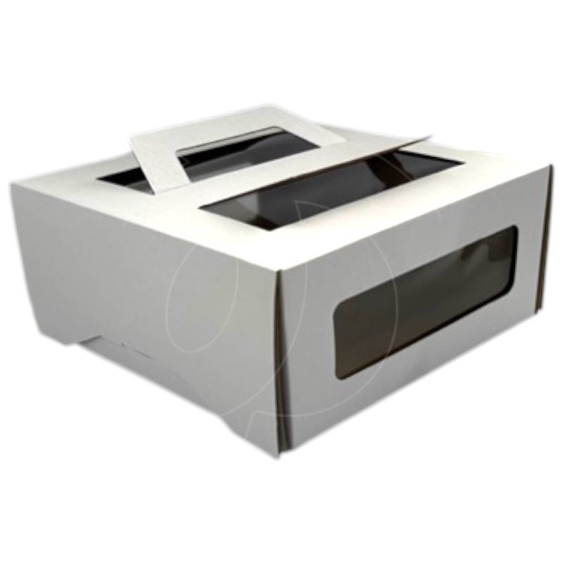 Доставка Коробка для торта с окном и ручками белая 21х21х11 см из магазина в вашем городе: