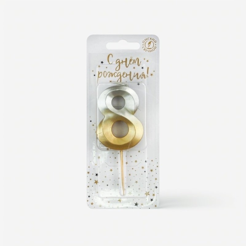 Доставка Свеча декоративная Цифра "8" Золото-Серебро из магазина в вашем городе: