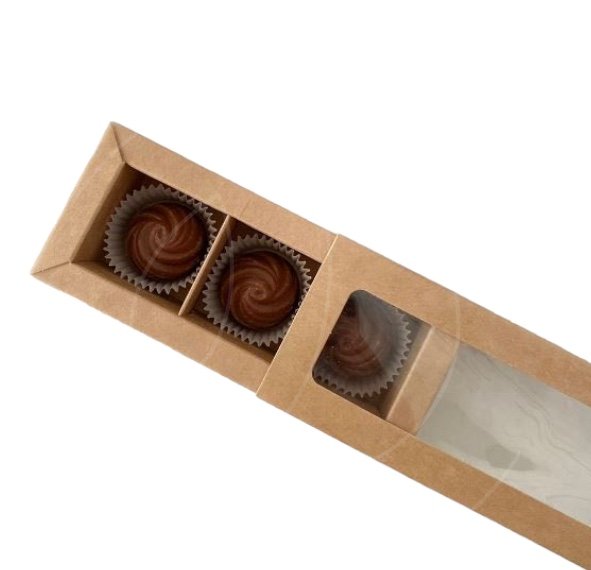 Доставка Коробка на 3 конфеты с окном крафт 13х5х3 см из магазина в вашем городе: